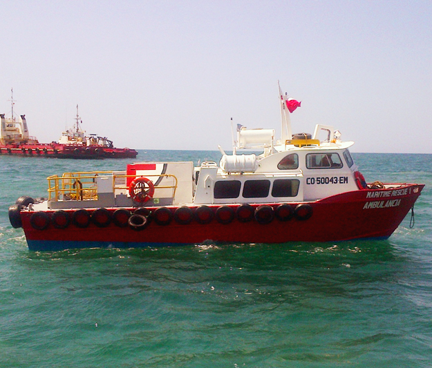 El servicio de ambulancia marítima puede realizar una navegación segura en mar abierto o aguas restringidas (puertos), cuenta con equipos de auxilio médico apropiados para el transporte asistido de pacientes o heridos que requieran asistencia médica básica y/o avanzada durante el traslado hasta un centro de asistencia médica.